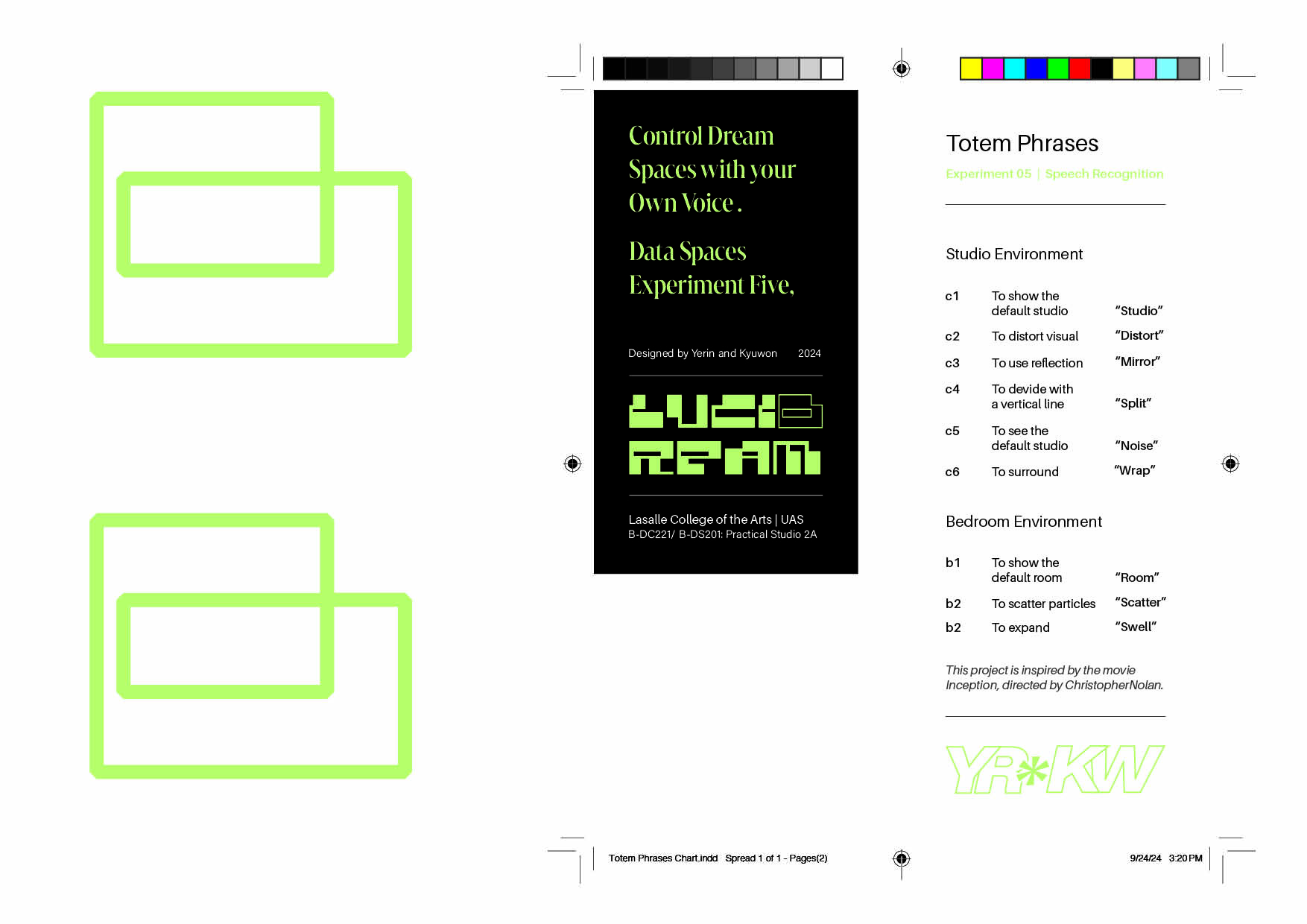 Expressing data as a narrativeWe designed a Totem Phrases Chart to represent the corresponding actions triggered by voice commands. This score maps the totem words to their visual changes and serves as a guide for interaction.
